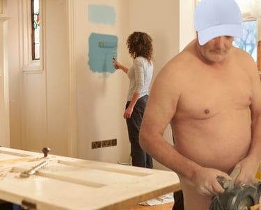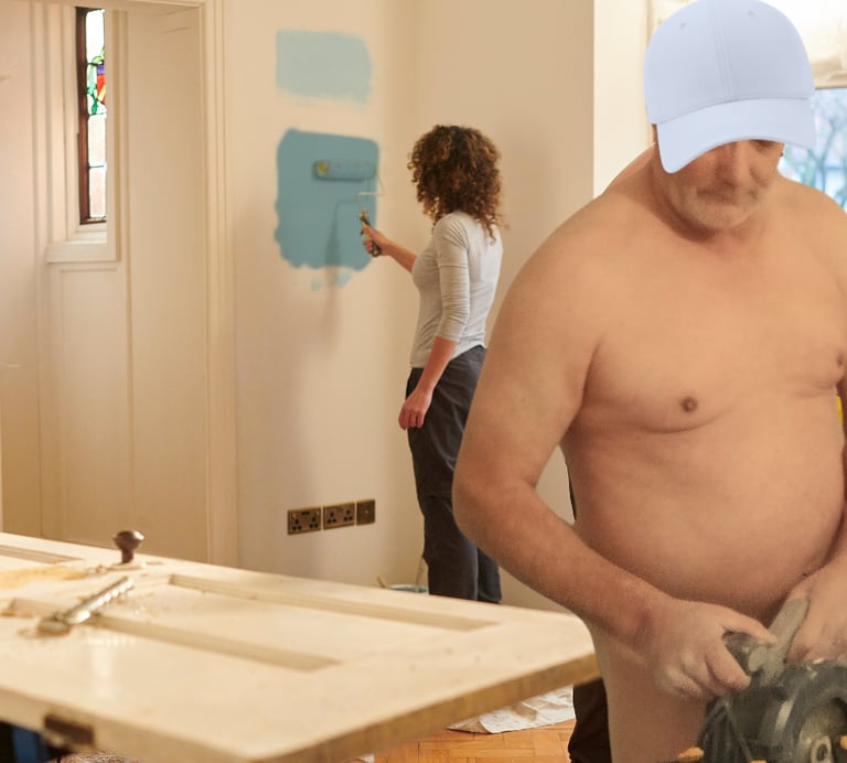 Bricolage nu sur site, encadré avec sérieux et consentement clair.